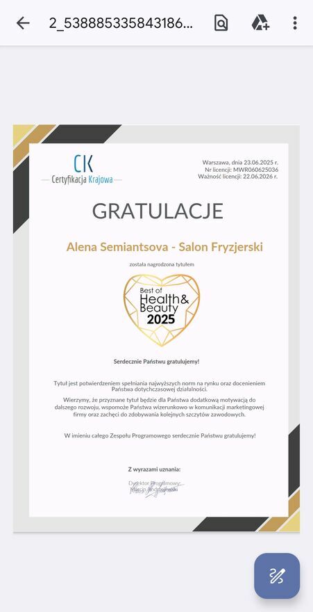 - Kategoria: Usługi kosmetyczne i fryzjerskie / Fryzjer i barber