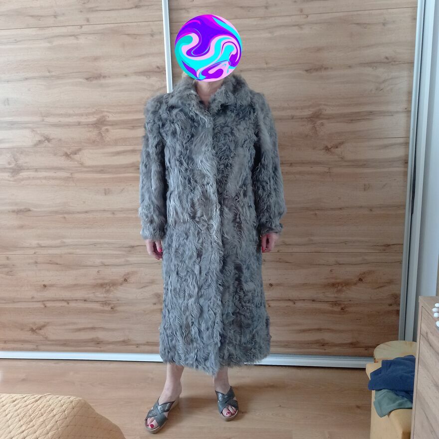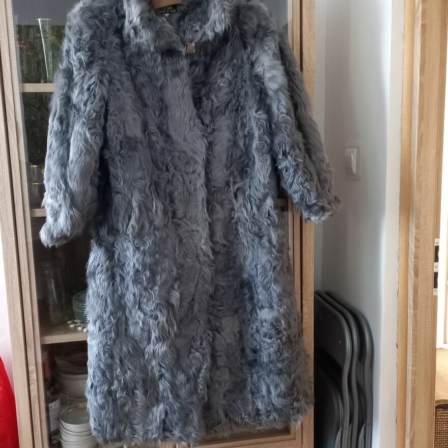 Sprzedam naturalne futro szare z kóz z kołnierzem firmy Gina Bacconi Creazioni Oryginal w rozmiarze XL .Stan idealny .