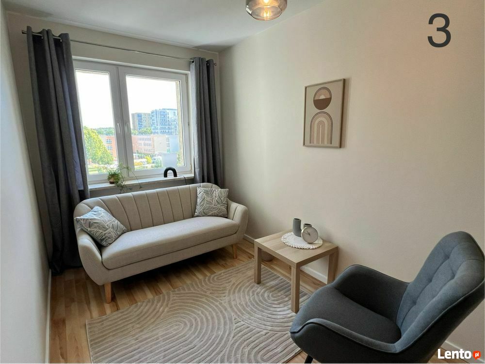 Gabinety przystosowane są do pracy indywidualnej i z parami, duży gabinet także do pracy z rodzinami i grupami (TUS, grupy wsparcia, terapie grupowe). W gabinetach znajdują się nowe, wygodne meble, aby zadbać o komfort zarówno pacjentów/klientów jak i specjalistów. W każdym z pokoi jest do dyspozycji miejsce, w którym można zostawić swoje dokumenty i materiały do pracy, dwa gabinety wyposażone są w biurka przydatne do pracy zdalnej. Gabinety są jasne i przytulne, okna wychodzą na tereny parkowe, można więc otwierać je bez obaw o hałasy z zewnątrz.