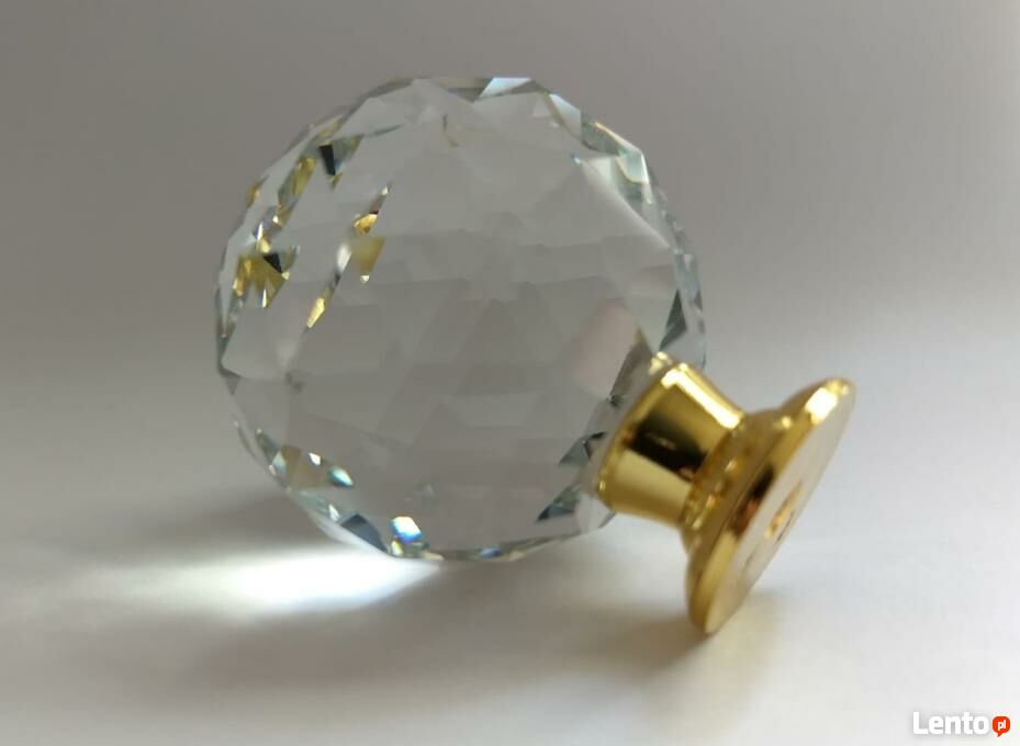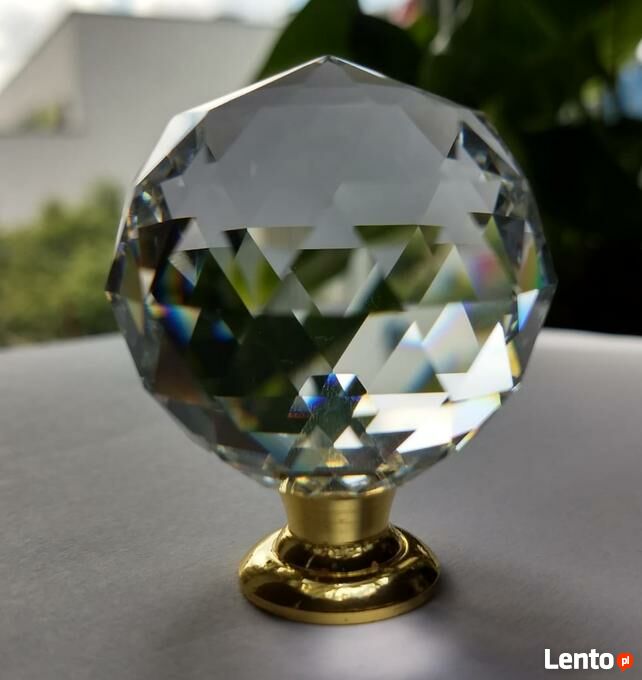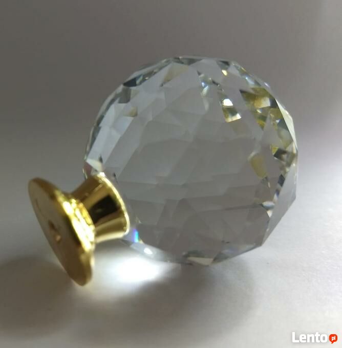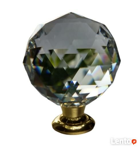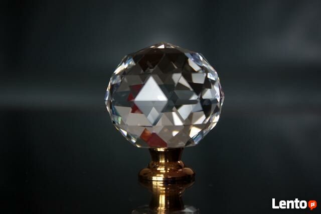 Gałki kryształowe meblowe - kula kryształowa o średnicy 4 cm, stopka w kolorze złotym.Uchwyt na gwint m4.