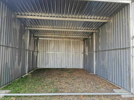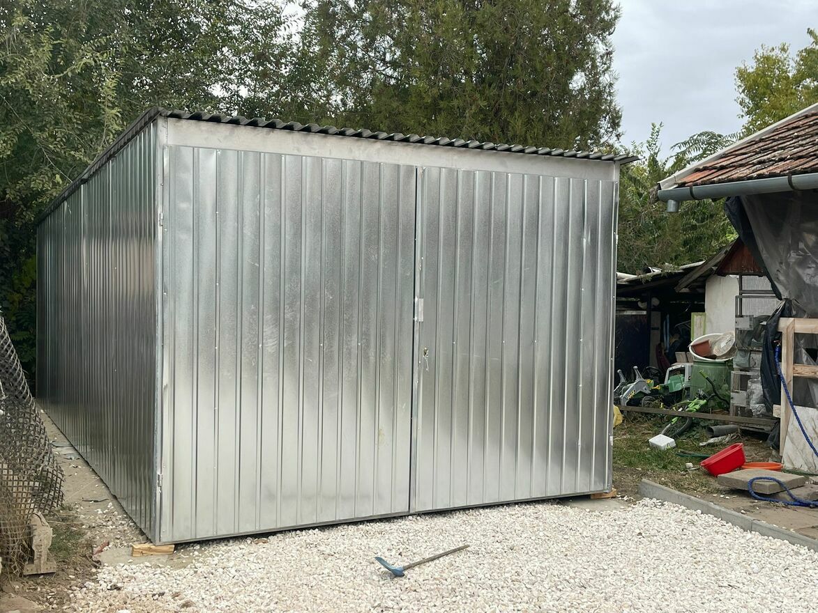 Garaż blaszany o wymiarach 3 × 5 m, II gatunku – budżetowy garaż przeznaczony na garaż samochodowy, schowek narzędziowy, blaszak na budowę.Konstrukcja wykonana z kątownika zimno giętego 40x40 .