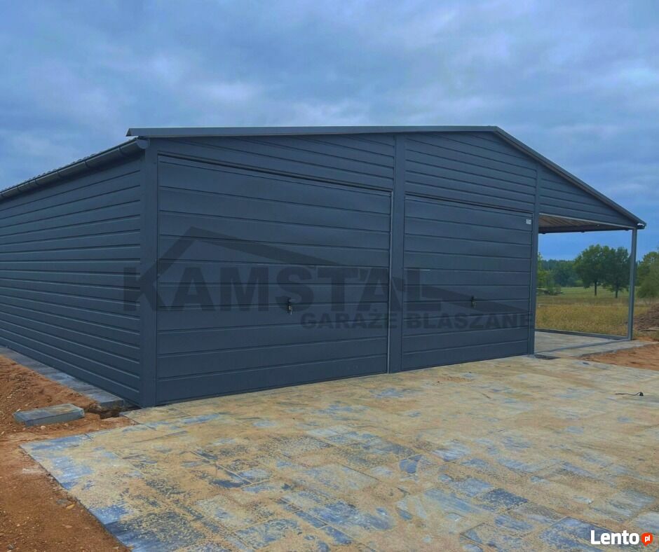Garaż 6x6 + wiata | Blachodachówka + rynny