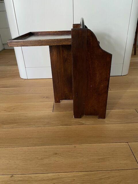 Gazetownik składany. Gazetownik ma dwie kieszenie. Idealnie sprawdzi się w towarzystwie sofy czy kanapy. Doskonały, aby odłożyć książkę czy gazetę a także filiżankę herbaty. Lite drewno. Szer. 42 cm, wys. 52 cm, głębokość z rozłożoną podstawką 51 cm, głębokość ze złożoną podstawką 20 cm. Stan idealny. Odbiór osobisty.Sprawdź zainteresowanie tym ogłoszeniem