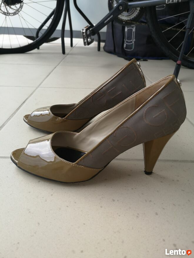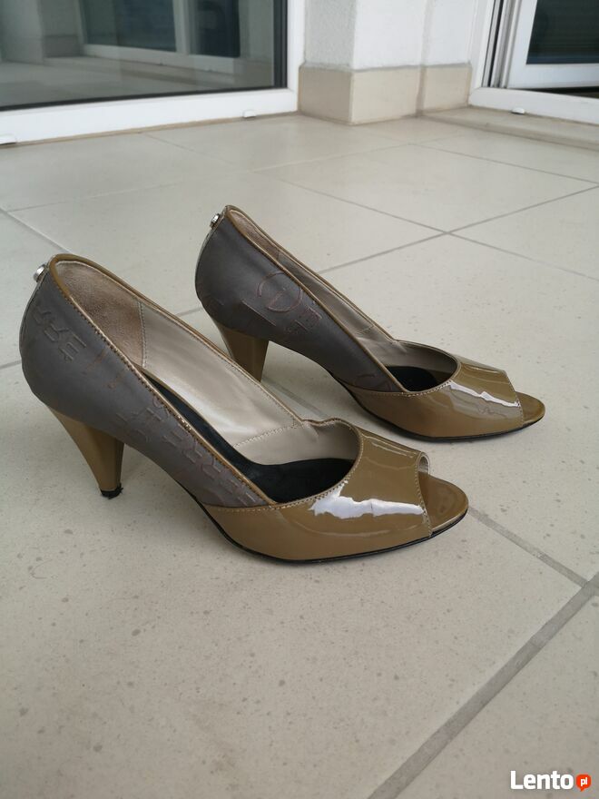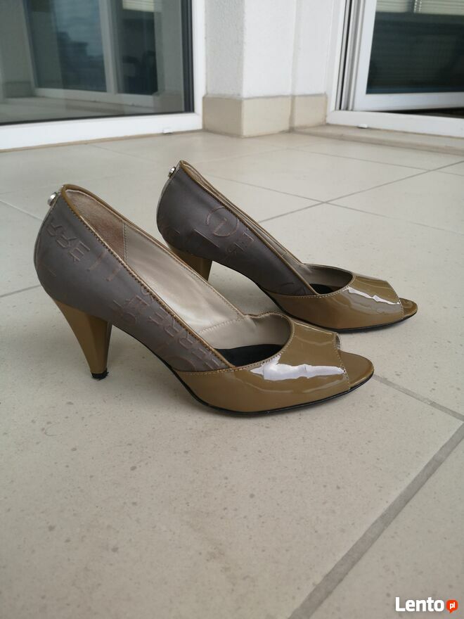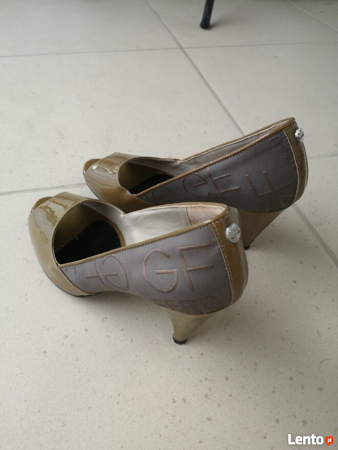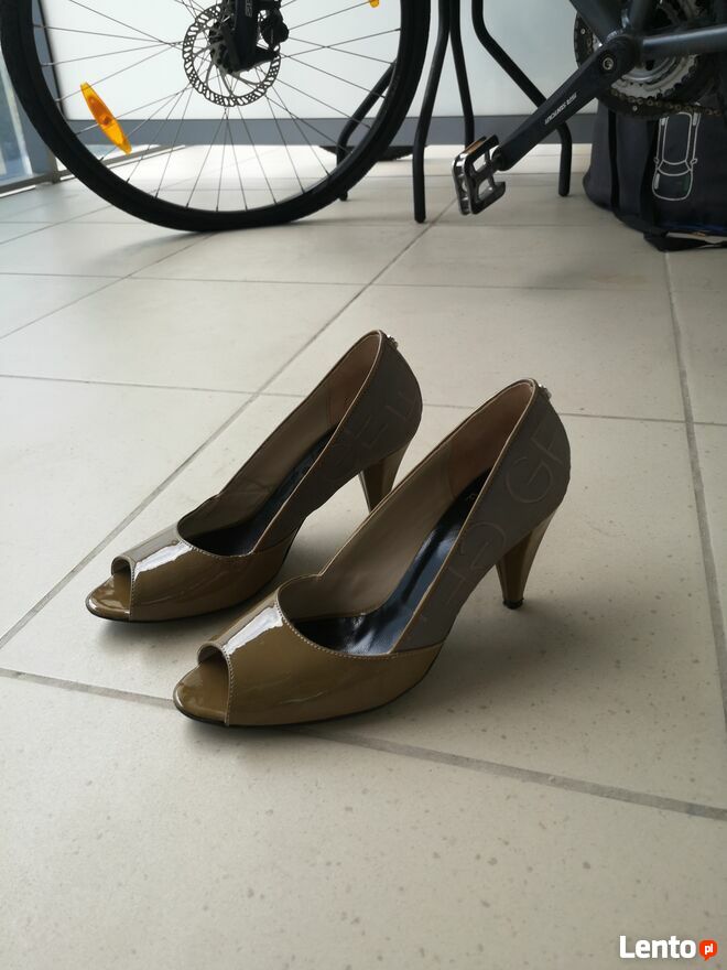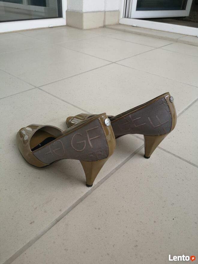 WitamMam do sprzedania bardzo ładne damskie włoskie czółenka półbuty buty firmy GF FERRE Gianfranco Ferre w kolorze oliwkowym/brązowym, wykonane z naturalnej skóry lakierowanej na zewnątrz oraz w środku (100% oryginał). Stan bardzo dobry. Made in Italy.