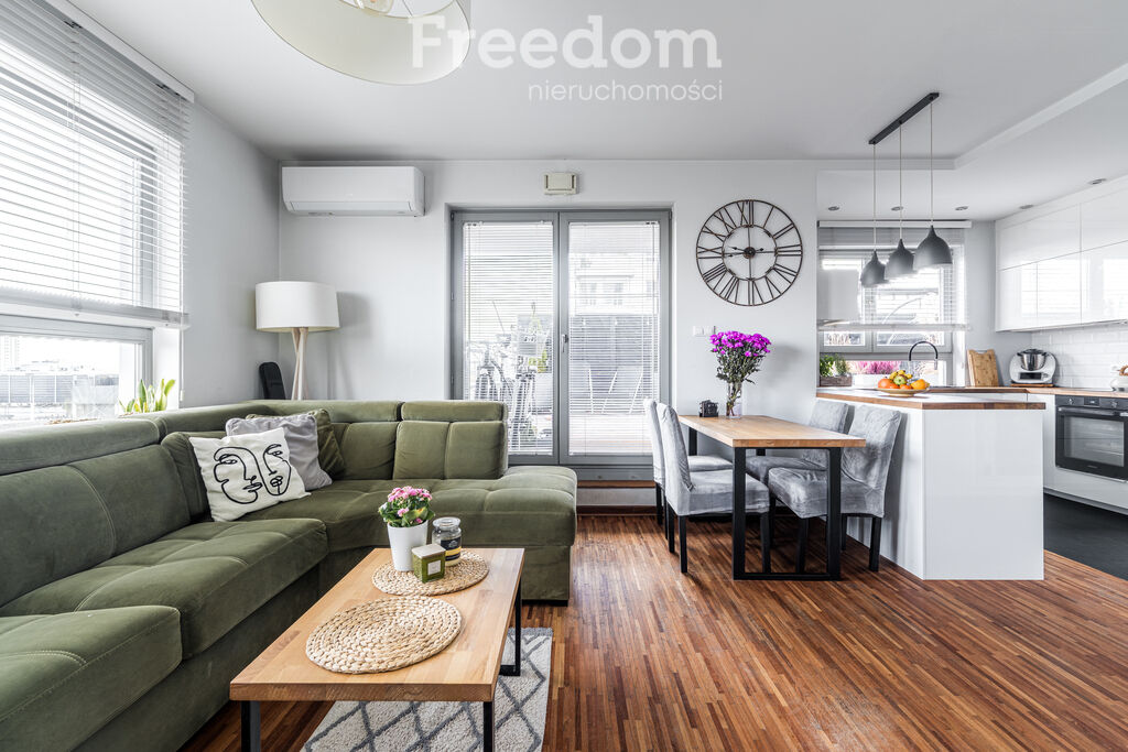 Mieszkanie posiada salon z aneksem kuchennym. Wyjście na 41-metrowy