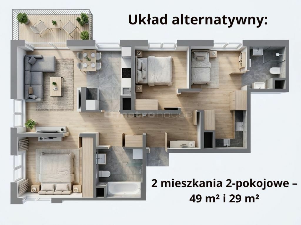 Podział na 3 mniejsze lokale znacząco ogranicza ryzyko inwestycyjne. Mniejsze mieszkania wynajmują się szybciej i stabilniej niż jedno duże, a rotacja najemców nie wpływa istotnie na całość przychodu.