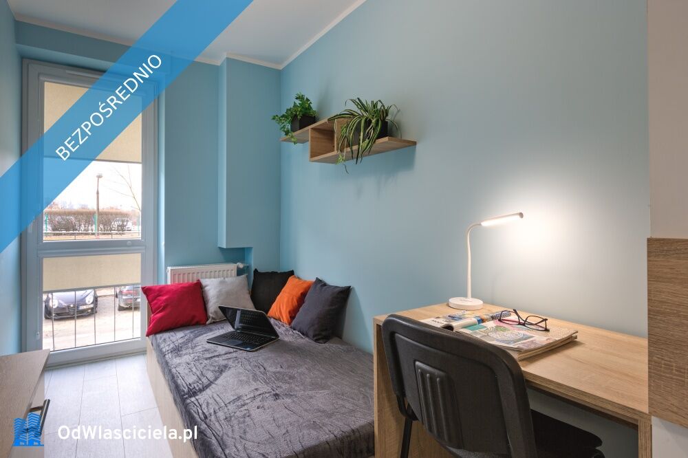 - pokój: łóżko z wysuwanymi szufladami, szafa, biurko, krzesło, lampka, półki na książki.