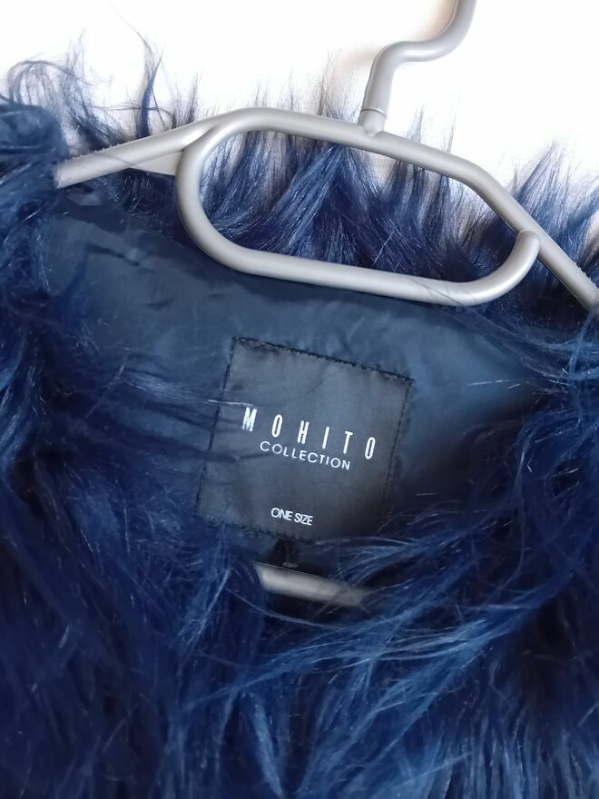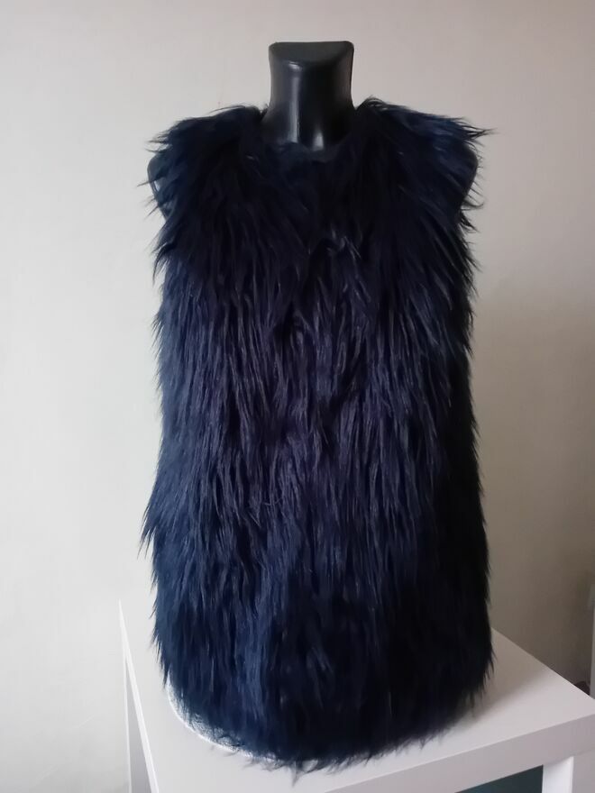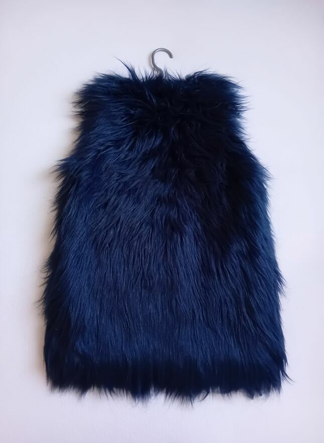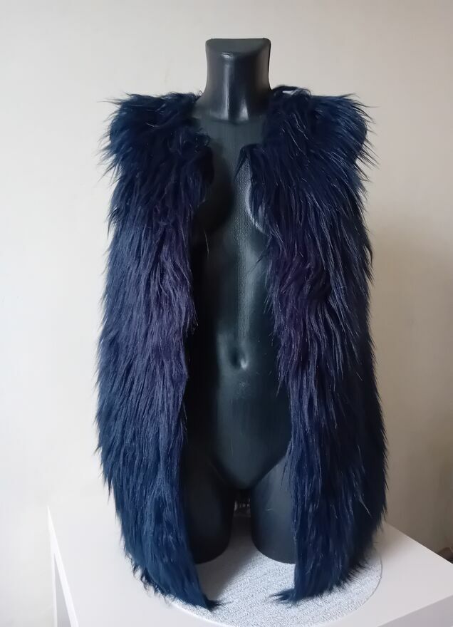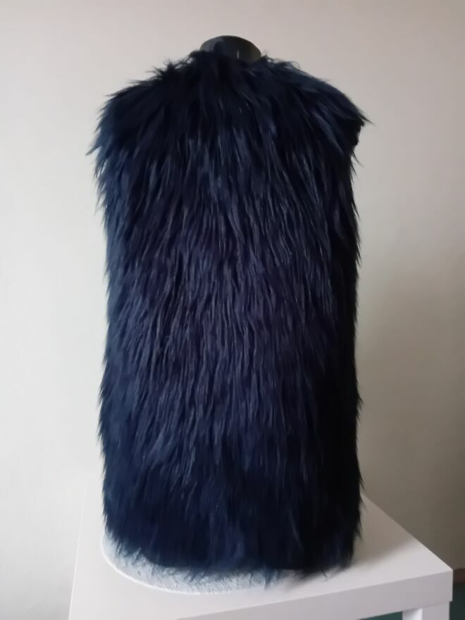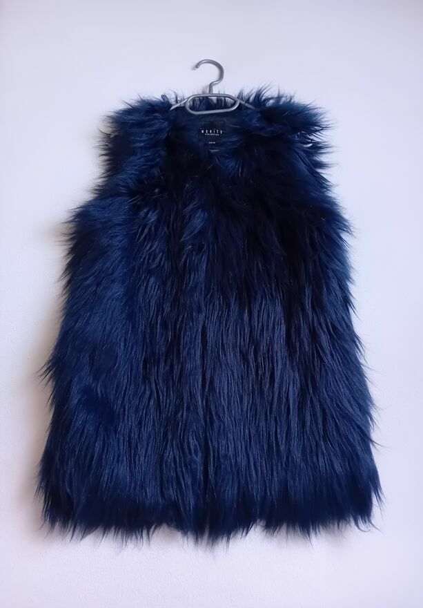 Granatowa kamizelka damska futrzana ciepła zimowa z zapiecie