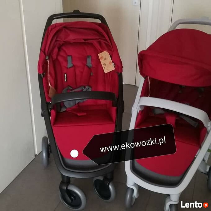 Nowa wersja, rozkładane oparcie, większa budka, długie pasy, haczyki na ramie. Koła delikatnie większe i miększe dzięki czemu lepiej się prowadzi wózek w trudniejszych warunkach.