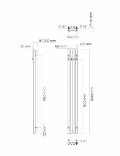 Oltens Stang grzejnik łazienkowy grafit 180,5 x 20,5.Oltens Varmare zestaw maskując zaworów grzejnikowy.