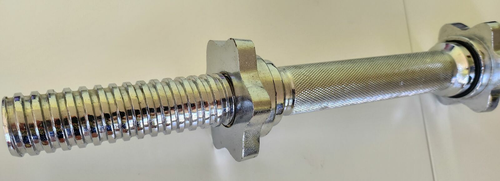 "ogłoszenie widoczne = AKTUALNE"Gryf krótki śrubowy długość 38 cm do obciążeń z otworami o średnicy 28 mm. Długość chwytu 12,5 cm, długość gwintowana 11,5 cm. W zestawie Gryf plus dwie blokady śrubowy. Sprzęt bez uszkodzeń.