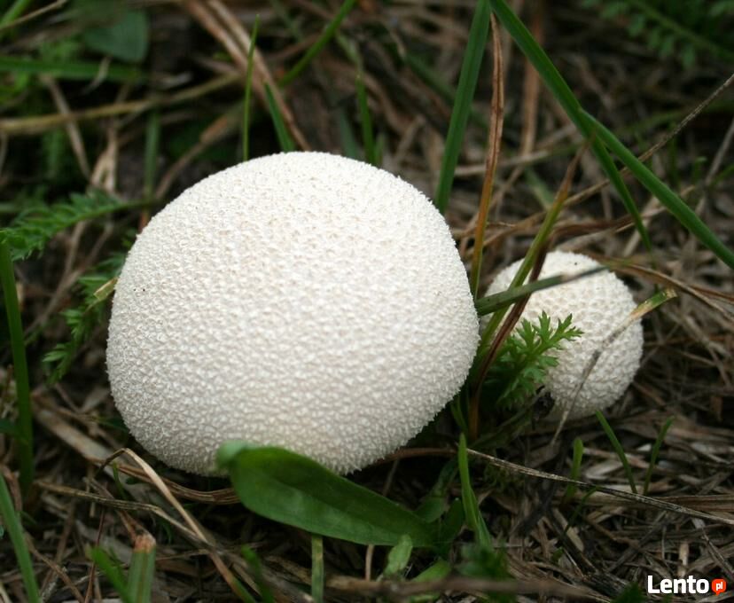 owocnika. Gigant wśród płaszcze przeciwdeszczowe. Sferyczne nogi grzyb bez osiągnięcia wagi ponad 10 kg! W młodości, biały i gęsty, potem coraz bardziej brązowe i miękkie. Wewnętrzna masy czystej bieli, następnie zielonkawo żółty, brązowy końcu, suszy się jak gąbka. W terminie wymagalności, zewnętrzna skóra jest uszkodzona, a nie w kawałkach. Pozostałości grzyba jak luffy, może przetrwać bez rozkładu przez kilka miesięcy.