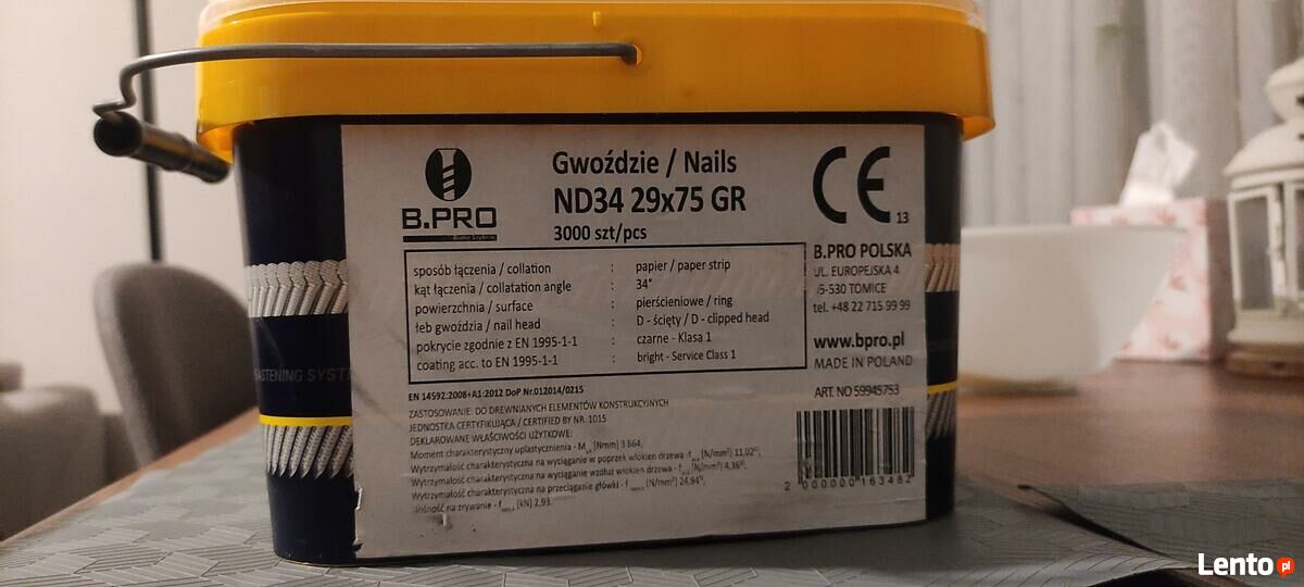Dzień dobry, posiadam na sprzedaż gwoździe do gwoździarki. Kąt nachylenia 34⁰, rozmiar 29x75 ilość 1360 szt. Do gwoździ dorzucam jeden nabój gazowy rawlplug. Zapraszam do kontaktuSprawdź zainteresowanie tym ogłoszeniem