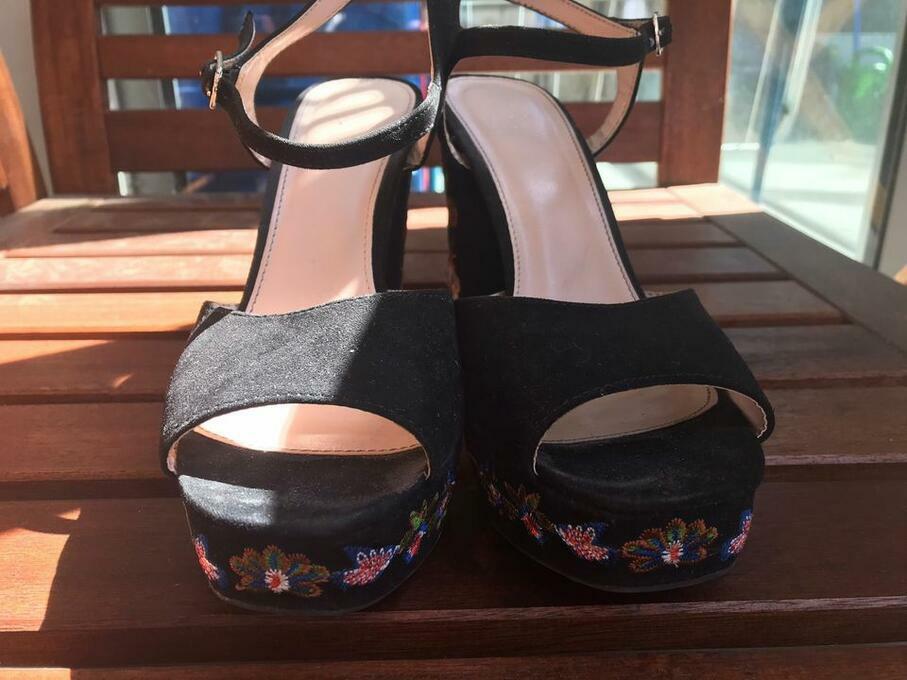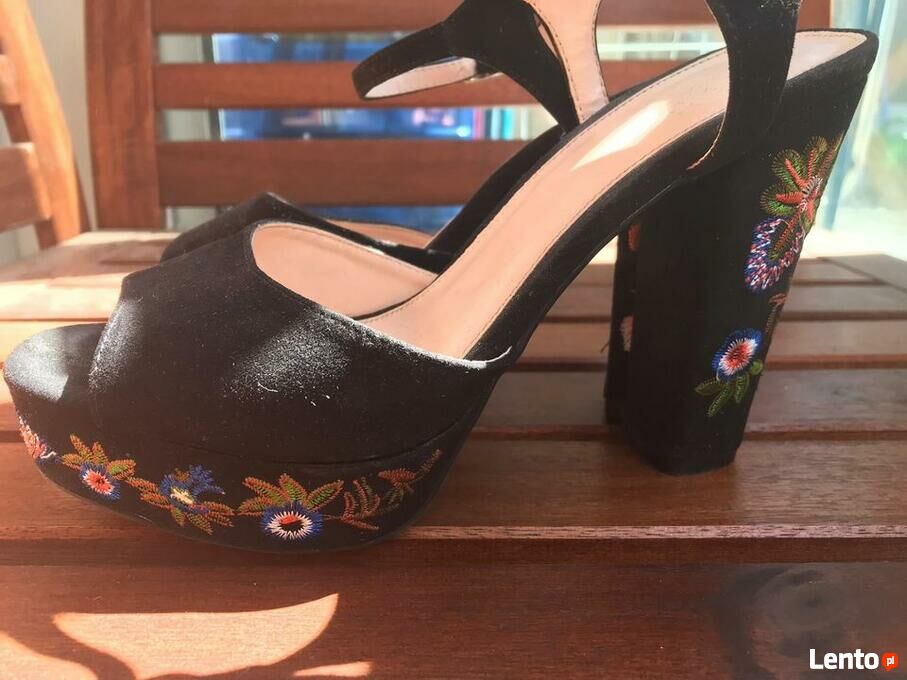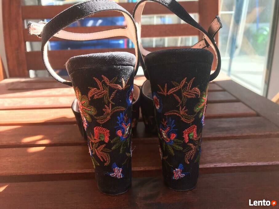 Haftowane sandałki na wysokim obcasie 39