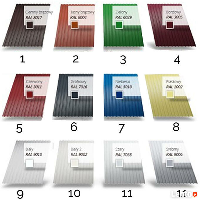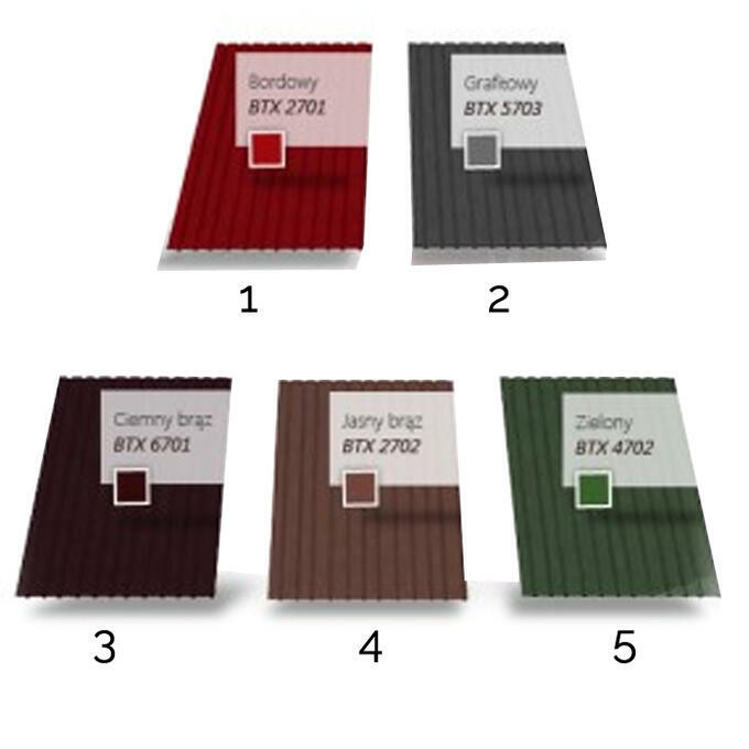 Zdjęcie wybarwień blachy przedstawione obok może się różnić od kolorów rzeczywistych, paleta jest wyłącznie informacyjna.