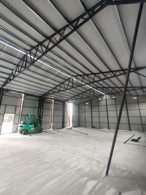 Wiązary stalowe, które stosujemy w konstrukcji nośnej sprawiają, że hale wykonane ze stali zaprojektowane przez naszą firmę Budexstal, osiągają rozpiętość nawet do 300 metrów kwadratowych. Nie ma konieczności stosowania słupów podporowych wewnątrz hali lub magazynu, co umożliwia lepsze zagospodarowanie przestrzeni w środku obiektu.Hala magazynowa o wymiarach 12x20 m, sprawdzi się idealnie pod firmę, gospodarstwo rolne lub do celów prywatnych. Jej powierzchnia użytkowa to 200 mkw, a wewnątrz nie znajdują się żadne słupy podporowe. Dach wykonany został z kratownic z profili zamkniętych, przez co wszelkie obciążenia zostają równomiernie rozłożone na konstrukcji hali i ścianach. Profile zamknięte użyto również do ścian. Cała konstrukcja jest zabezpieczona anty-korozyjnie i jest niezwykle wytrzymała oraz solidnie wykonana. Blaszak, magazyn, hala produkcyjna została obłożona pierwszym gatunkiem blachy trapezowej akrylowej w pięknym kolorze grafitowym. Na frontowej ścianie garażu znajdują się cztery bramy - dwie dwuskrzydłowe 400x500 cm, dwie dwuskrzydłowa 400x400 cm. Bramy automatyczne sterowane są za pomocą pilota bezprzewodowego. W hali blaszanej zamontowano również dodatkowe wejście i rynny.