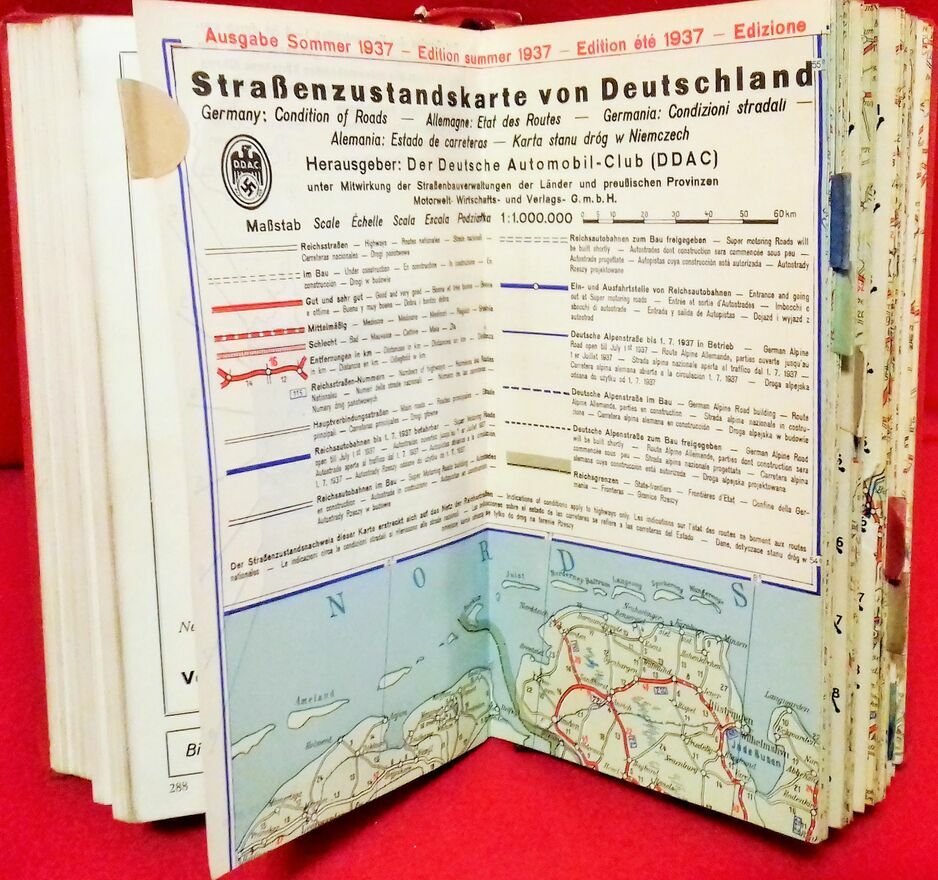 Hallwag Autoführer von Deutschland 1937/38Dokładne, kolorowe mapy. Plany miast. Autostrady. Tablice rejestracyjne. Opisy i zdjęcia regionów.