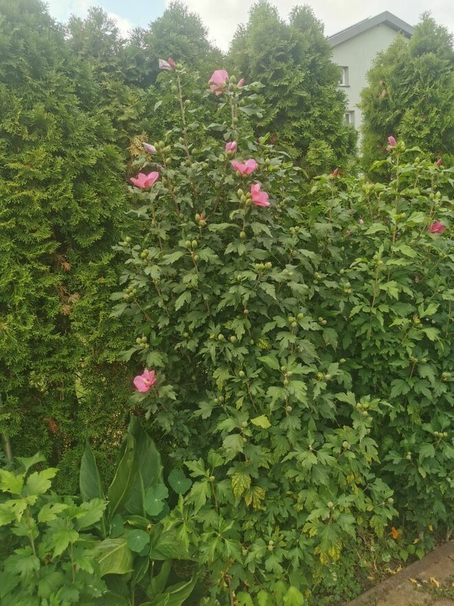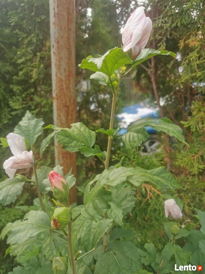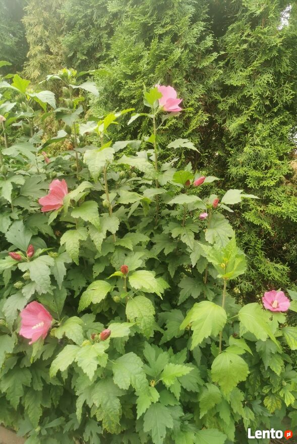 Sprzedam duże sadzonki HIBUSCUSA SYRYJSKIEGO w kolorze różowym.Sadzonki wykopywane wprost z gruntu wysokość 1m - 1,7m.