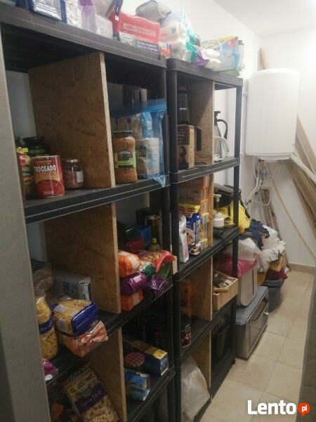 Dom posiada również pomieszczenie spiżarni ok 6m2. obok kuchni oraz dodatkowe pomieszczenie gospodarcze na zewnątrz. Przed wejściem znajduje się duży pokój, który można wykończyć i przekształcić w piękny taras z werandą, z którego można podziwiać piękne widoki na morze i góry.