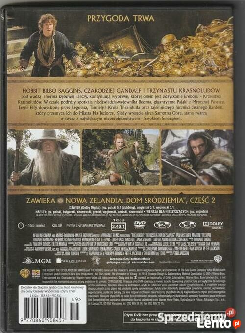 Hobbit: Pustkowie Smauga [DVD] The Hobbit: The Desolation of Smaug Kraj: USA, Nowa Zelandia Rok produkcji: 2013 Reżyseria: Peter Jackson Scenariusz: Guillermo del Toro, Peter Jackson, Fran Walsh, Philippa Boyens, J.R.R. Tolkien Muzyka: Howard Shore Obsada: Christopher Lee, Stephen Fry, Greg Ellis, Ian Holm, Andy Serkis, Doug Jones, Elijah Wood, Benedict Cumberbatch, Ian McKellen, Cate Blanchett, Brian Blessed, Trevor Cooper, Matt Smith, Graham McTavish, Billy Connolly, Martin Freeman, Hugo Weaving, Luke Evans, Orlando Bloom, ... Studio: Warner Bros Opis Druga część filmowej adaptacja książki J.R.R. Tolkiena, będąca wstępem do słynnego "Władcy Pierścieni". To opowieść pełna niezwykłych wydarzeń i magicznych postaci, przedstawiająca odwieczną walkę dobra ze złem. Po niezwykłym sukcesie trylogii wyreżyserowanej przez Petera Jacksona, publiczność musiała czekać aż dziewięć długich lat, w czasie których bardzo wiele działo się wokół zapowiadanej ekranizacji "Hobbita". Plotki i spekulacje wciąż podtrzymywały wielkie zainteresowanie nowym filmem, który ostatecznie zrealizowany zostanie w trzech częściach: "Hobbit: Niezwykła podróż", "Hobbit: Pustkowie Smauga" oraz "Hobbit: Tam i z powrotem". Stan produktu Produkt ORYGINALNY. Płyta NOWA. Brak Folii. Tytuł: Hobbit: Pustkowie Smauga Dział: DVD Kraj wydania: Polska Nominacje do Oscara: 3 Kategoria wiekowa (MPAA): PG-13 Czas trwania: 155 min. Dodatki: bezpośredni dostęp do scen Napisy: polskie, angielskie (dla niedosłyszących), bułgarskie, chorwackie, greckie, serbskie, słoweńskie, węgierskie Dźwięk: Dolby Digital 5.1 polski Dolby Digital 5.1 angielski Dolby Digital 5.1 węgierski Polska wersja: dubbing, napisy Obraz: 16:9 / 2,40:1 Region DVD: 2, 5 Opakowanie: keep case Liczba nośników: [1xDVD] Karton 83 Ogłoszenie jest aktualne dopóki znajduje się na stronie . Odbiór osobisty lub wysyłkaSprawdź zainteresowanie tym ogłoszeniem