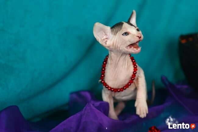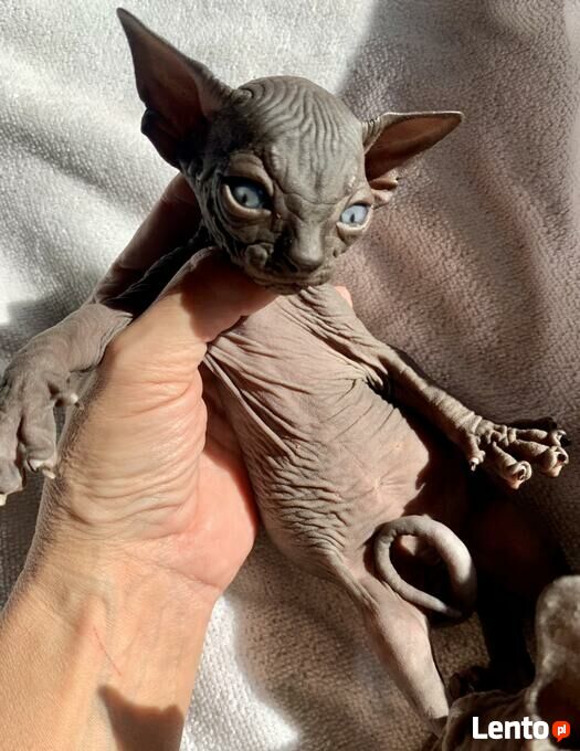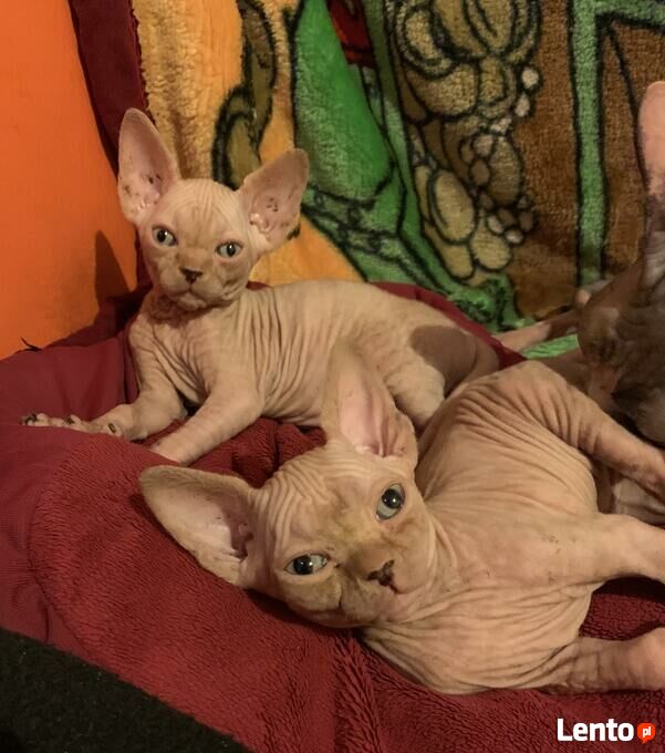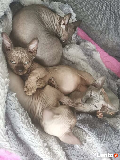 Kocięta mają wybitne pochodzenie, ojciec SC/EC. SUPREME Champion - EUROPA Champion / czysty rodowód (wyłącznie sfinksy "SPH") Rasowe głowy, duże uszy prawidłowej formy i dobrze osadzone. Kocięta karmione tylko profesjonalnymi produktami, mieszkają w warunkach domowych. Do odbioru będą po wszystkich szczepieniach. Rodzice są do obejrzenia na miejscu. Zapraszamy do REZERWACJI!!!