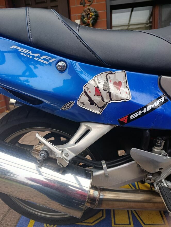 Jestem właścicielem od pięciu lat. Stan techniczny oceniam na bardzo dobry, wizualnie widoczne ślady użytkowania, wieku, czy parkingowych wywrotek (moje 3) – ale też potwierdzenie bez-wypadkowości motocykla. Miejsce z naklejkami sam naprawiałem (niefachowo). Chcesz stan idealny – wymień plastiki – ok 2-3 tyś PLN