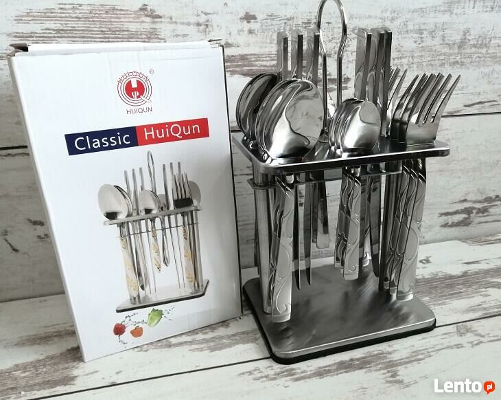 HUIQUN ZESTAW 24 ELEMENTY SZTUĆCE STOŁOWE PO-418 + STOJAK !