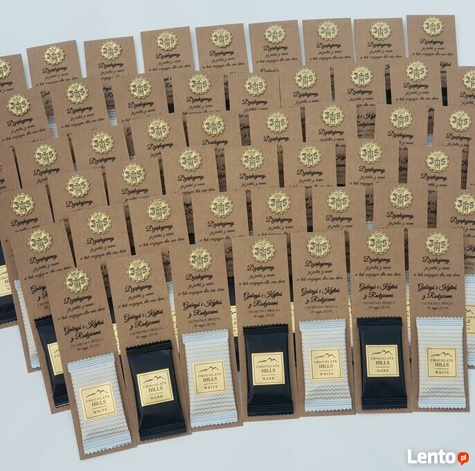 Upominki dla gości - czekoladki belgijskie bez cukru deserowe lub białeWymiary: 4,5cm x 15cm