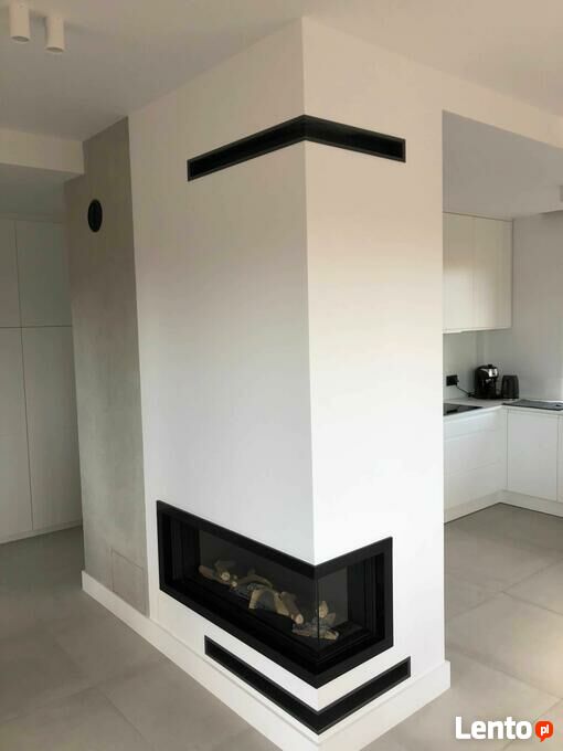 Zabudowa będzie wykonana w nowoczesnej formie kominka narożnego , z wszystkimi niezbędnymi elementami do instalacji.