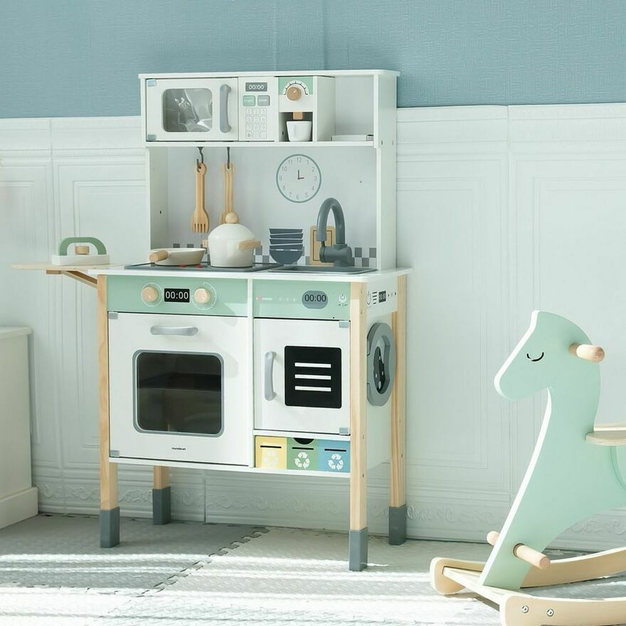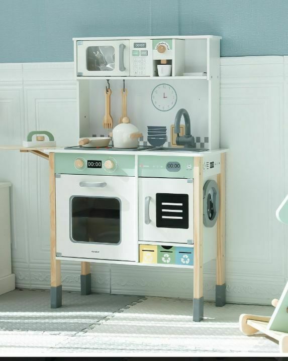 Interaktywna Drewniana kuchnia dla dzieci z pralka