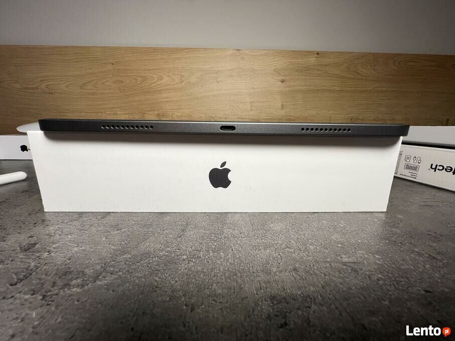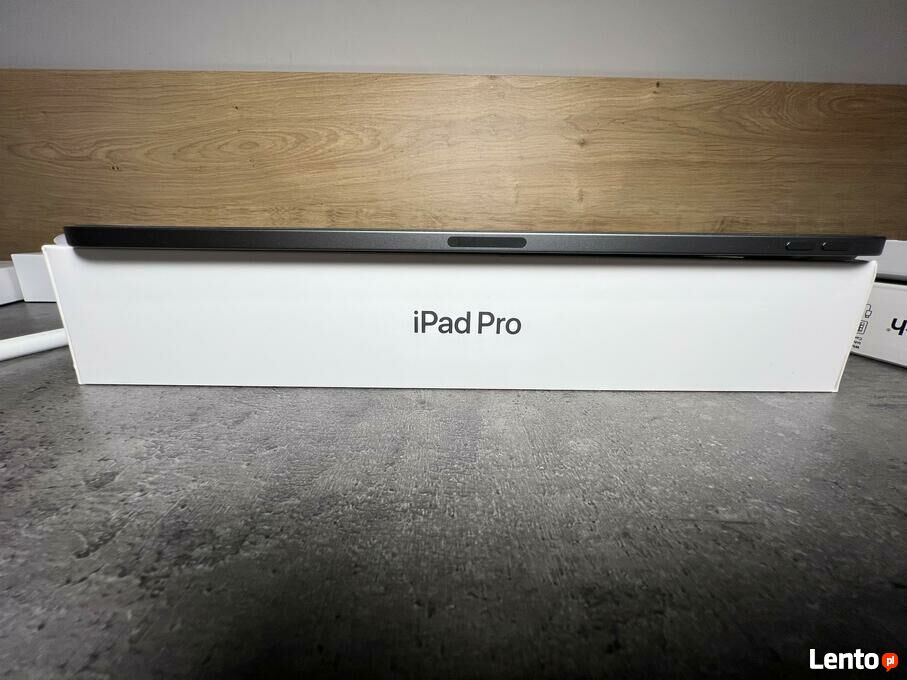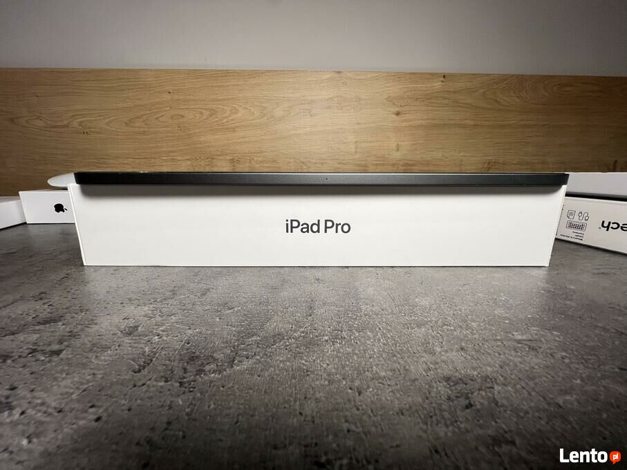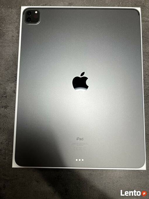 Na sprzedaż iPad Pro 12,9 cala 5 generacji Space Gray o pojemności 512 GB wersja wi-fi, zakupiony 4 lipca 2021 roku w autoryzowanym salonie Apple. Gwarancja apple care wygasła, była aktywna przez rok natomiast sprzęt nigdy nie był w serwisie. Sam tablet w stanie idealnym, zarówno plecki jak i ekran, PĘKNIĘCIE WIDOCZNE NA ZDJĘCIACH JEST NA SZKLE HARTOWANYM. Sam tablet ma założone szkło ochronne na ekranie od nowości jak i zawsze był noszony w etui w pełni zakrywającym plecki, boki oraz ekran. Sprzęt był wykorzystywany wyłącznie stacjonarnie jako dodatkowy monitor do PC. Nie miał więc ciężkiego życia, głównie odtwarzał filmy i muzykę w tle zabijające cisze w biurze, okazjonalnie wykorzystywany jako tablet graficzny. Działa bardzo płynnie i bezproblemowo, również głośniki, mikrofony oraz aparaty są w pełni sprawne. W zestaw wchodzi sam tablet, kostka ładowarki, kabel ładowarki usb typ-c - usb typ-c, instrukcje, pudełko. Cały osprzęt opisany wyżej jest oryginalny i był dołączony do urządzenia. Dodatkowo dołączam granatowe etui z miejscem na apple pencil. Zapraszam do kontaktu w wiadomości prywatnej chętnie wyślę więcej zdjęć oraz film z działania zarówno wyświetlacza jak i głośników.USZKODZENIE WIDOCZNE NA ZDJECIU JEST WYŁĄCZNIE NA NAKLEJONYM SZKLE HARTOWANYM. EKRAN JEST W STANIE IDEALNYM.