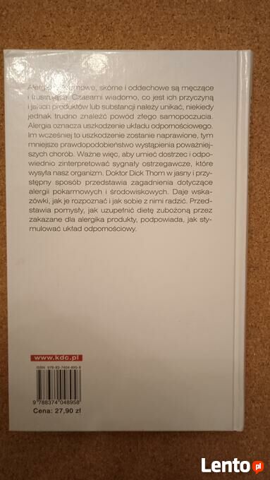 "ogłoszenie widoczne = Aktualne"Jak sobie radzić z alergiami pokarmowymi i środowiskowymi D. Thom, porady i zalecenia żywieniowe. Książka w twardej okładce, 318 stron.