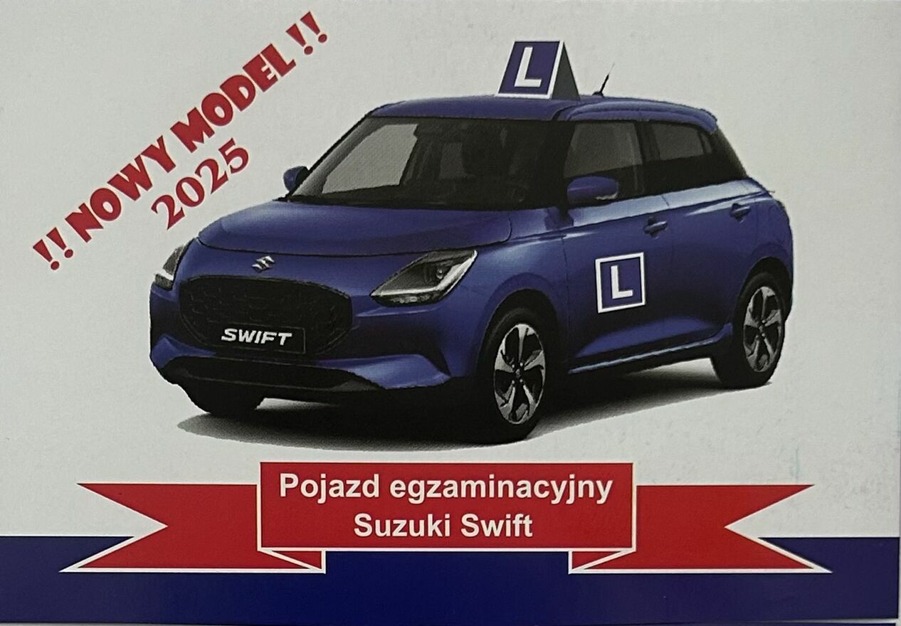 Pojazd egzaminacyjny , nowy Suzuki Swift, praktyczne zastosowanie przepisów ruchu drogowego.
