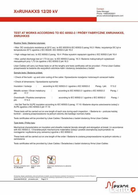 Parametry elektryczne: Napięcie 12/20(24)kV