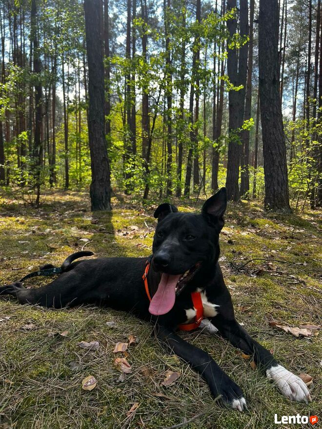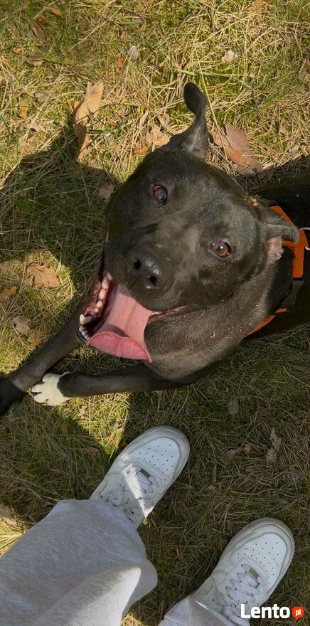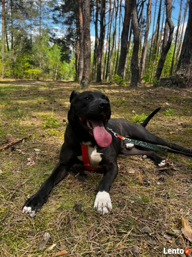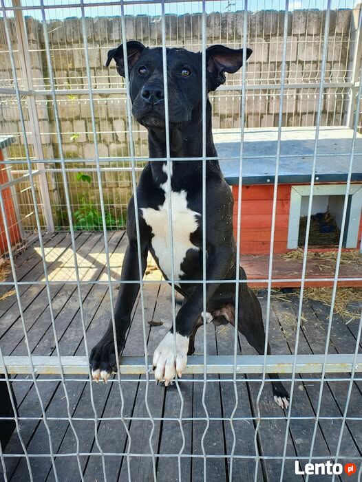 Kali to młodziutki pies w typie rasy ttb.Błąkał się w okolicach Serocka-mazowieckie i trafił do schroniska.