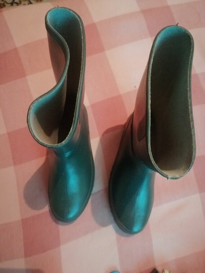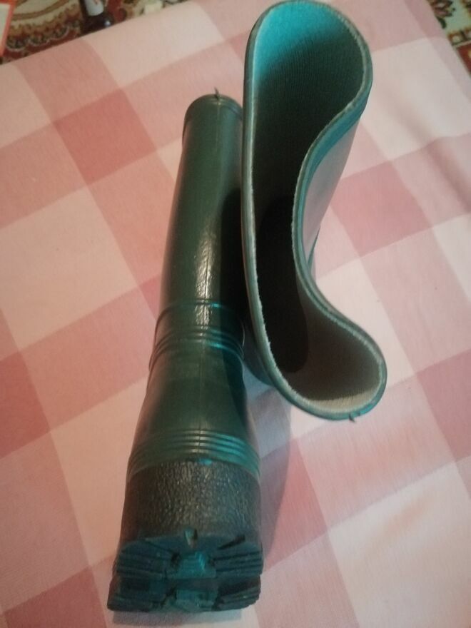 Nowe kalosze w rozmiarze 36/37. Kolor zielony. Doskonałe na deszczowe dni. Wysokość 30 cm, nie używane, po likwidacji sklepu obuwniczego. Możliwy dowóz na terenie Warszawy w miarę możliwości. Możliwa zamiana na kamerkę samochodową.
