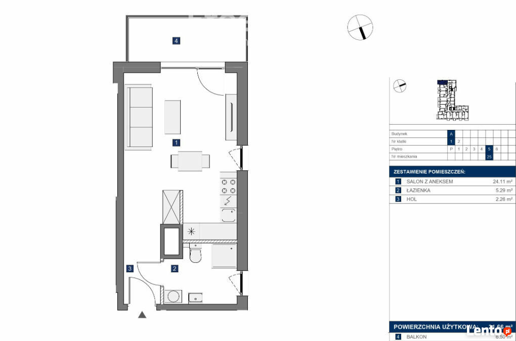 Na sprzedaż 1 pokojowe mieszkanie o powierzchni 31,66 m2, w