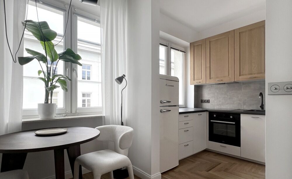Functional studio apartment in the heart of Warsaw, in the best part of the southern part of Śródmieście. Bright and high (3 meters). Ideal for a single person, a couple, or an investor. 29.5 m².