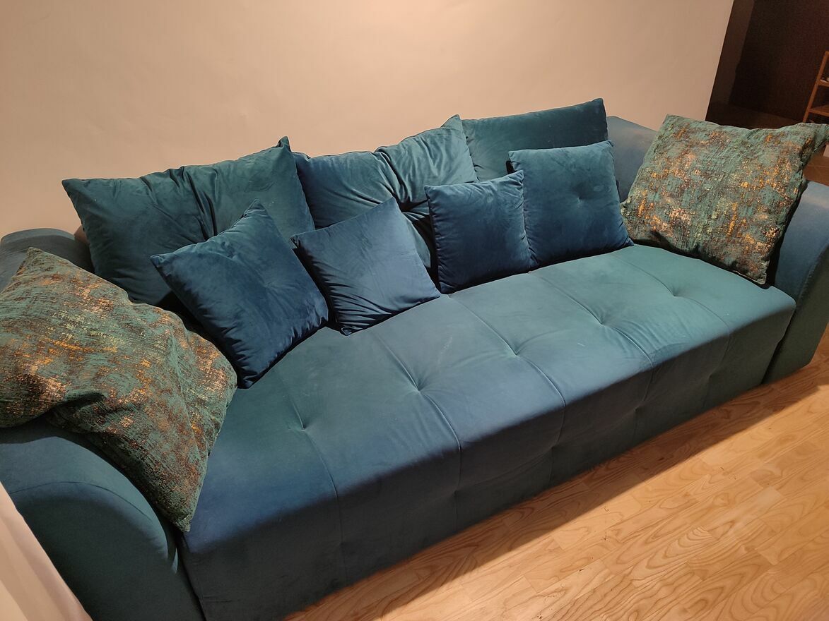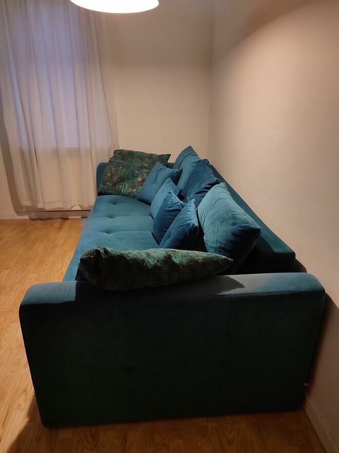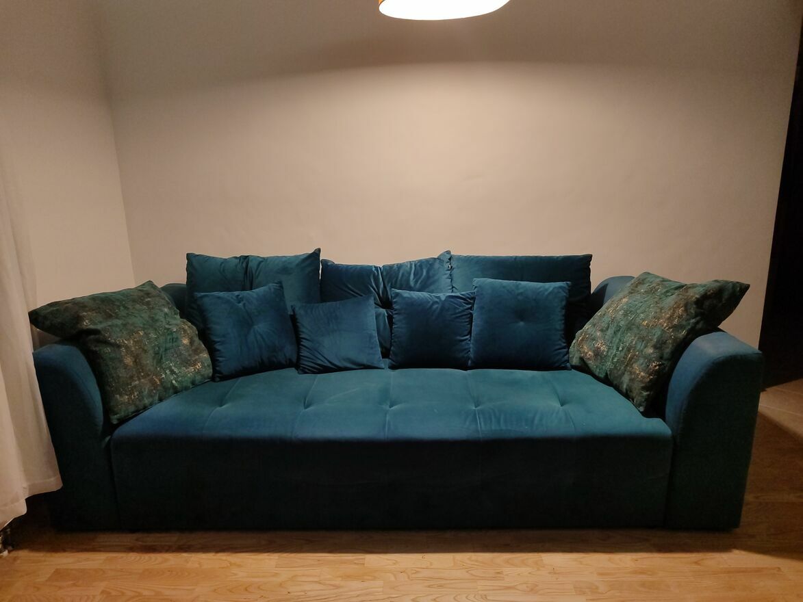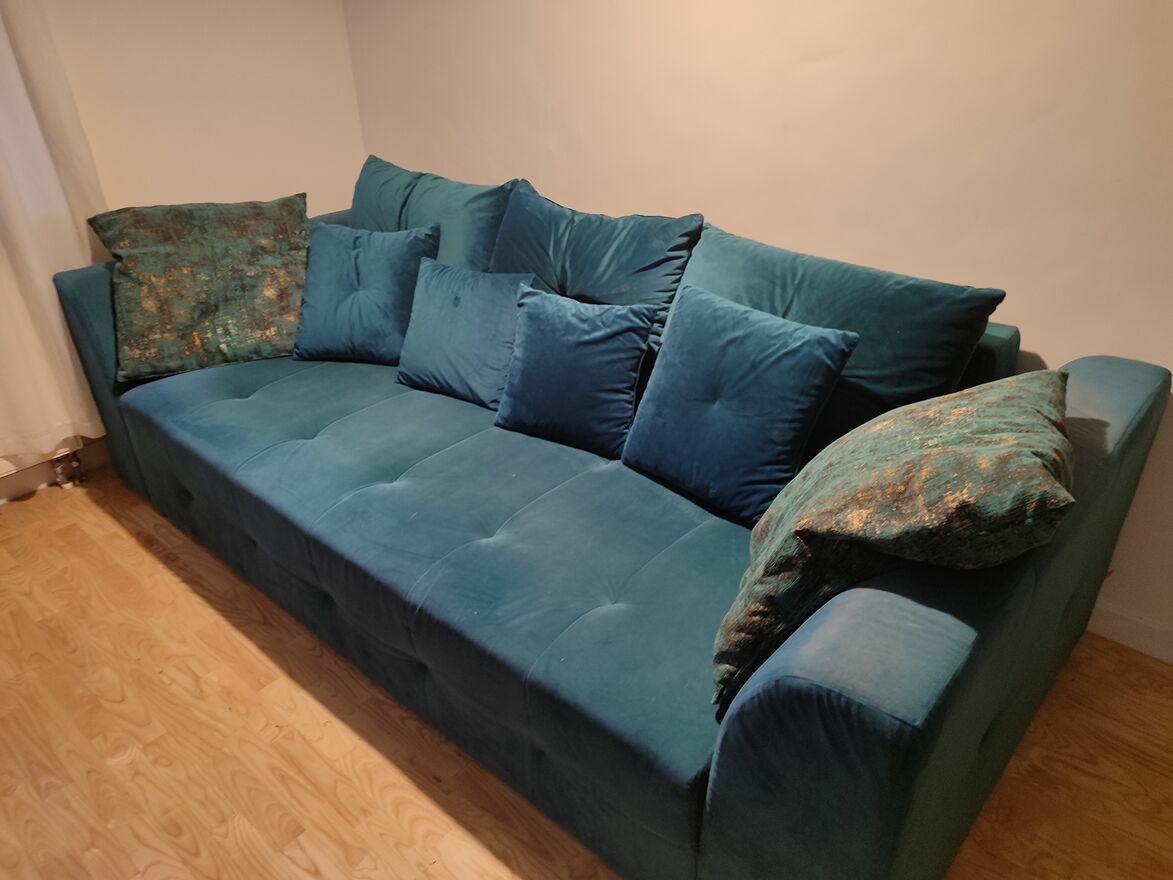 Sprzedam dużą, elegancką, używaną i rozkładaną kanapę z weluru w kolorze butelkowym (wym. 253x164 cm po rozłożeniu, 253x100 wym. przed rozłożeniem). Boki kanapy mogą zostać rozmontowane. Lewy bok nosi ślady zabrudzenia i wymaga prania. Odbiór osobisty Warszawa-Ursynów.Proszę o kontakt na ten numer: 666 - pokaż numer telefonu -