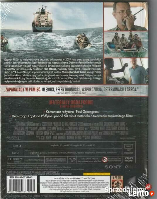 Kapitan Phillips (booklet) [DVD] Captain Phillips Kraj: USA Rok produkcji: 2013 Reżyseria: Paul Greengrass Scenariusz: Billy Ray, Richard Phillips, Stephan Talty, Stephan Tatty Muzyka: Henry Jackman Obsada: Tom Hanks, Catherine Keener, George J. Vezina, Chris Palermo, Mark Holden, Phyllis Lynn, Tom Mariano, Vincenzo Nicoli, Adam Nelson, Omar Berdouni, San Shella, Suzanne Prunty, Barkhad Abdi, Marshall Berenson, Louis Mahoney, Ian Ralph, Nasir Jama, Max Wrottesley, Len Anderson IV, ... Opis Kapitan Phillips to wielowarstwowe ukazanie, dokonanego w 2009 roku przez grupę somalijskich piratów, porwania amerykańskiego kontenerowca Maersk Alabama. Oparty na faktach film koncentruje się na wzajemnych relacjach między oficerem dowodzącym Alabamą, kapitanem Richardem Phillipsem (dwukrotny laureat Nagrody Akademii Tom Hanks, Najlepszy Aktor, 1993, Filadelfia; Najlepszy Aktor, 1994, Forrest Gump) i kapitanem somalijskich piratów, Musem (Barkhad Abdi), którego Phillips jest zakładnikiem. Gdy Muse i jego ludzie biorą na cel nieuzbrojony, towarowy statek Phillipsa, kurs jest nieuchronnie kolizyjny. Na skutek konfrontacji, dochodzi do impasu. Obaj mężczyźni nie mają żadnego wpływu na koleje wydarzeń i zdani są na łaskę sił, nad którymi nie mają kontroli. Stan produktu Produkt ORYGINALNY. Płyta NOWA. Tytuł: Kapitan Phillips (booklet) Nominacje do Oscara: 6 Kategoria wiekowa (MPAA): PG-13 Czas trwania: 129 min. Dodatki: bezpośredni dostęp do scen menu interaktywne Napisy: polskie, angielskie, chorwackie, czeskie, rumuńskie, serbskie, słowackie, słoweńskie, węgierskie Dźwięk: Dolby Digital 5.1 polski Dolby Digital 5.1 angielski Dolby Digital 5.1 czeski Dolby Digital 5.1 węgierski Polska wersja: lektor, napisy Obraz: 16:9 Region DVD: 2 Opakowanie: booklet Liczba nośników: [1xDVD] Karton 83 Ogłoszenie jest aktualne dopóki znajduje się na stronie . Odbiór osobisty lub wysyłkaSprawdź zainteresowanie tym ogłoszeniem