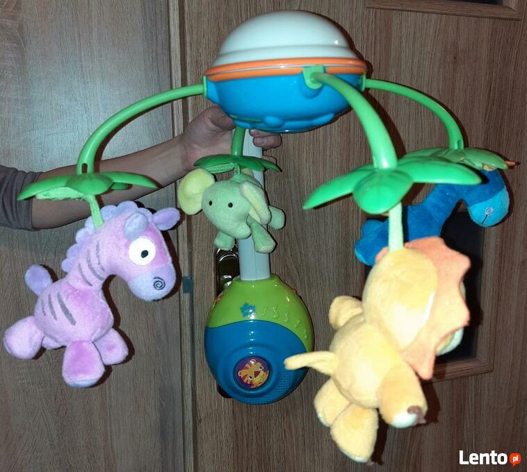 W stanie idealnym niezwykle interesująca karuzela. Posiada 5 melodyjek uspokajających dziecko przed snem.Gratisowo dorzucam zaczep do smoczka.