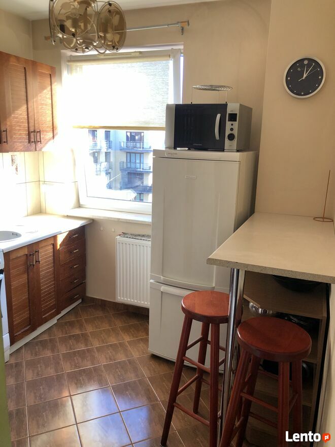 Do wynajęcia Kawalerka o powierzchni ok 36m2 z dużym balkonem i widokiem na Tor Łyżwiarski Stegny - 7 piętro- winda. Mieszkanie wyposażone, odświeżone, czyste, zadbane gotowe do zamieszkania. W przedpokoju znajdują się dwie duże szafy wnękowe.Kuchnia znajduje się w odrębnym pomieszczeniu, wyposażona w lodówkę, okap, mikrofale i piekarnik.