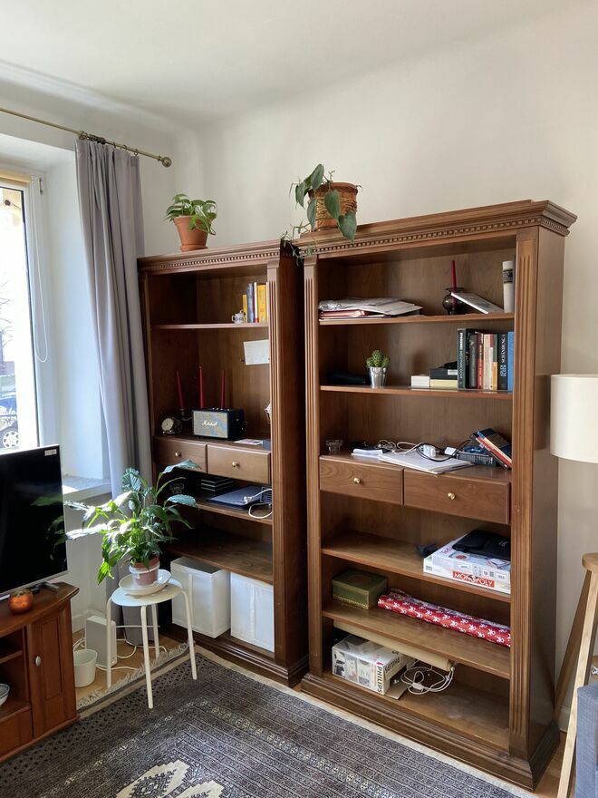 Jest w pełni umeblowane, posiada: podwójny narożnik tapicerski, 3 drewniane regały, stół, stolik ława, 2 duże szafy w zabudowie. Ma osobną, widną kuchnię z płyta ind. Pełne AGD ze zmywarką, Na podłodze parkiet/ gres oraz estetyczny wełniany dywan.