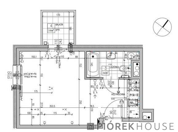 Mieszkanie o powierzchni 24,28m2 składa się z: