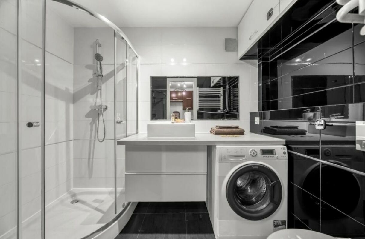 Łazienka: Kabina prysznicowa, pralko-suszarka, duże lustro