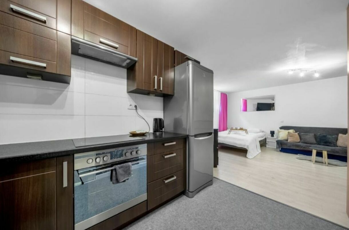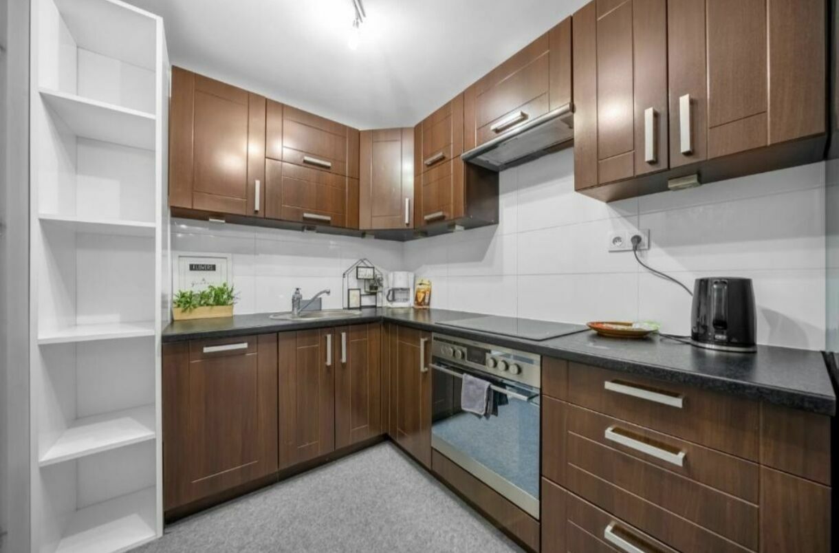 Kuchnia: W pełni wyposażony w sprzęt AGD (płyta, lodówka, piekarnik, zmywarka). Naczynia i wszystkie sprzęty zostają w cenie.