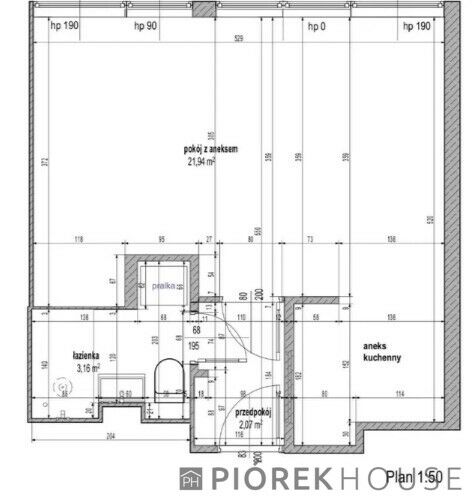 Mieszkanie o powierzchni 27,40m2 składa się z:
