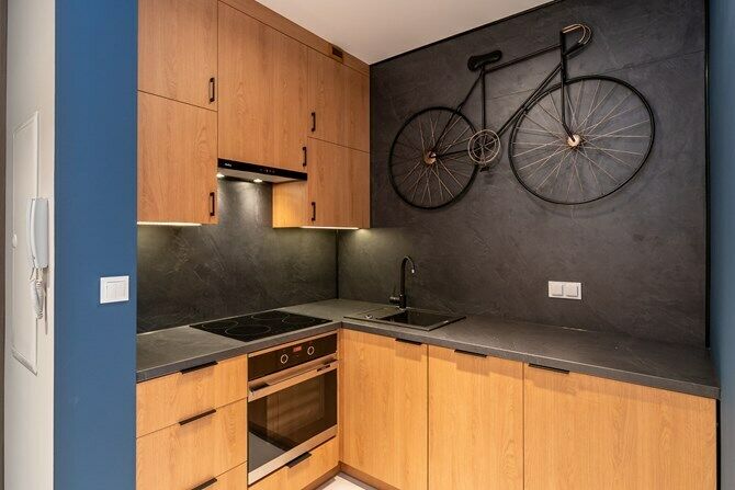 Kuchnia: lodówka, okap, 4-palnikowa płyta indukcyjna, zmywarka,