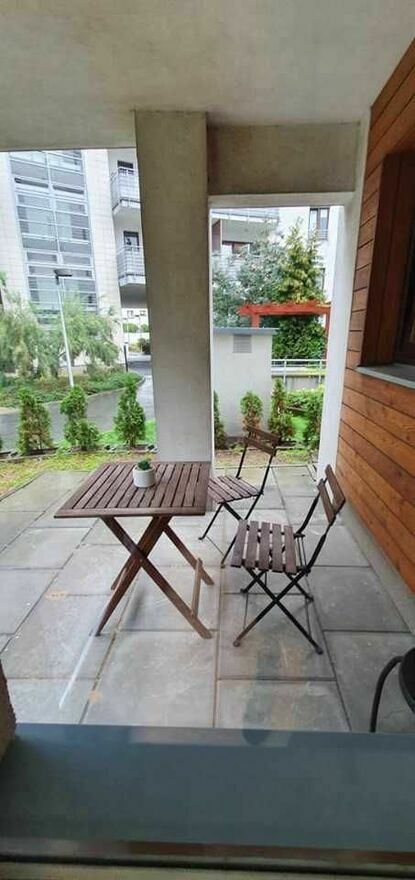 Do wynajęcia duża kawalerka na Woli przy ul. Olbrachta z tarasem i ogródkiem.Mieszkanie zlokalizowane na strzeżonym pełnym zieleni i alejek spacerowych- osiedlu z 2009roku, Osiedle monitorowane i strzeżone całodobowo.