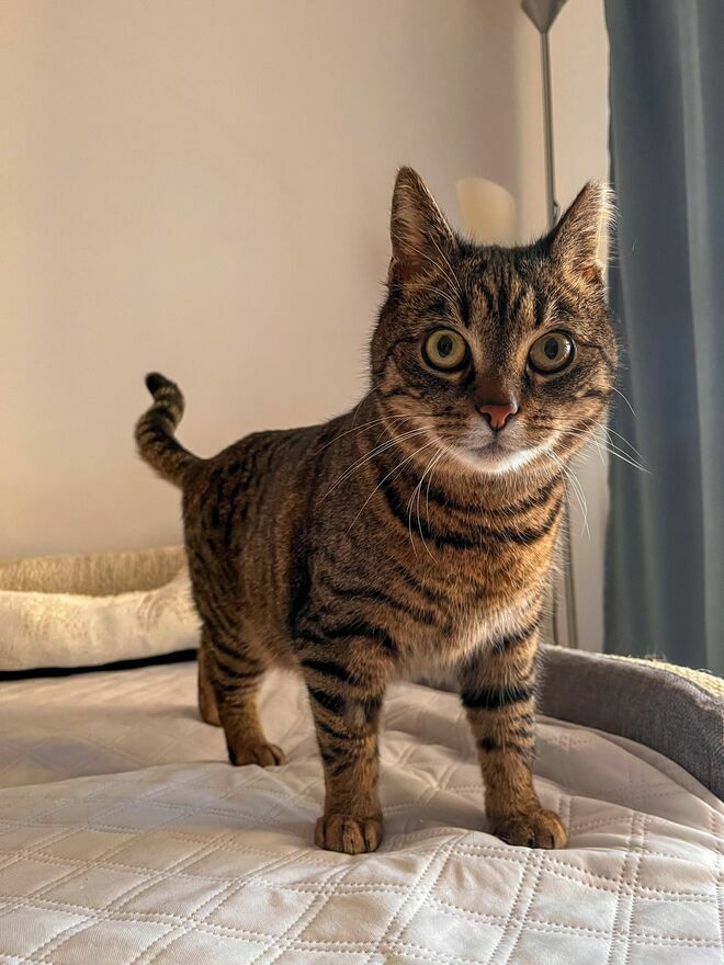 Kimchi vel Kimczita to prześliczna ok. 3-letnia kotka o tygrysim umaszczeniu i miękkim futerku. Ma duże, wyraziste oczy, które od razu przyciągają uwagę i charakterystyczny lekko zdziwiony wyraz pyszczka, jakby właśnie usłyszała, że ktoś nie lubi kotów i nie mogła w to uwierzyćUwielbia głaskanie, jest niesamowitym pieszczochem; przy każdej możliwej okazji wskakuje na kolana. Kimchi jest kotką łagodną, spokojną i bardzo kontaktową, która uwielbia towarzystwo człowieka.